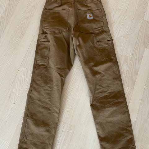 Carhartt Single Knee Pant housut miehille. Koko M, vyötärömerkintä 31 ja lahkeen pituus 32. Väri ruskea. Materiaali pääosin puuvillaa. Housuissa useita taskuja ja vahvistettuja yksityiskohtia, kuten reisitaskut ja työhenkinen leikkaus. Sopivat arki- ja työkäyttöön. Lahkeensuissa näkyy hieman kulumaa ja muutenkin siellä täällä.
