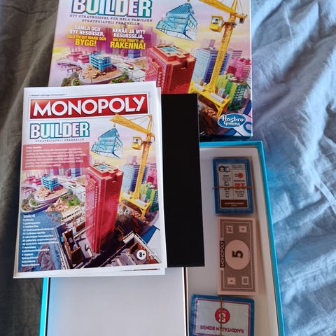 Monopoly Builder lautapeli. Hyväkuntoinen. Kaikki osat tallella. Pelata voi sekä suomeksi että ruotsiksi.