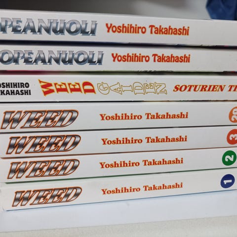 6kpl hopeanuoli, 6kpl weed, 2kpl fang, 2kpl gamu ja 1kpl ace manga sarjakuvia. Kaikki ehjiä. Hieman kulmat jostakin nousseet mutta sanoisin silti hyväkuntoisiksi.