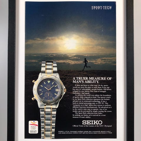 Offered for sale here is a framed original Seiko Watch magazine advertisement from 1993.