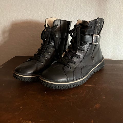 Rieker mustat talvikengät, koko 37. Mukavat jalassa, mutta itselle nykyään liian pienet.
