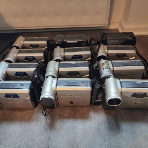 Vanhoja videokameroita. Sony handycam ja muita
