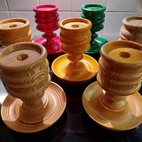 Kaksi Tapio Wirkkalan suunnittelemaa kynttilänjalkaa