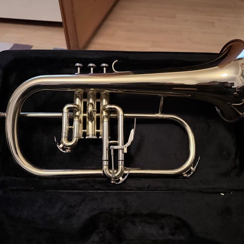 Hyvässä kunnossa oleva 3. triggerillä varustettu flyygelitorvi etsii uutta omistajaa.