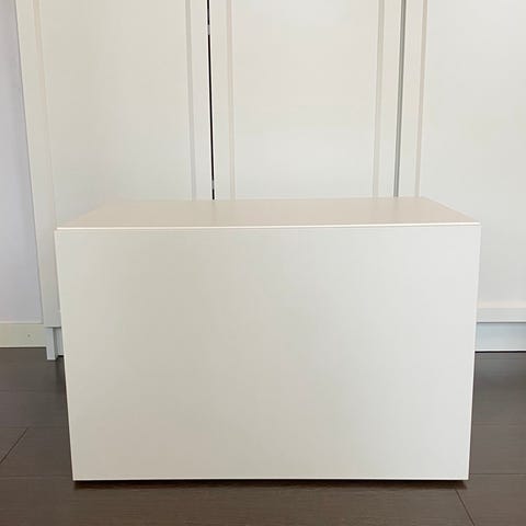 Hyvässä kunnossa oleva Enhet kaappi. Kaksi valkoista metallijalkaa löytyy tähän myös.