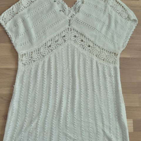 Upea Englannista ostettu pusero. Joustavaa materiaalia. Tähän kuuluu erillinen toppi alle estämään liiallusta läpinäkyvyyttä. Engl koko 16, vastaa eur 42-44. Mutta tarkista mitat. Kai-kai 52 cm, olka-helma 64cm. Väri on kerman valkoinen.