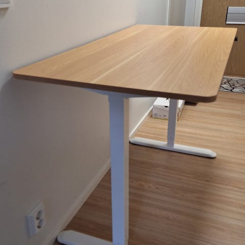 Hyväkuntoinen ja toimiva sähköpöytä. Molemmissa jaloissa oma moottori. Alimmillaan 63cm ja ylhäällä 128cm.