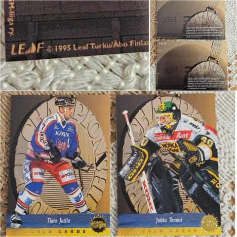 Kaksi Leaf Sisu jääkiekkokorttia vuodelta 1994 joissa pientä normaalia säilytyksen jälkeä kun tarkkaan katsoo joten katso kaikki kuvat. Paljon muitakin retro keräily jääkiekkokortteja myynnissä ja lisää tulee, kun kerkeän kuvaamaan :)