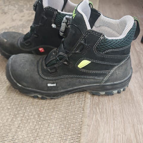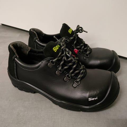 Vismo V1500 työkengät, koko EU 45. Väri harmaa punaisilla yksityiskohdilla. Kenkien päällinen on tekstiiliä ja synteettistä materiaalia, sisäosa hengittävää verkkokangasta. Nauhattomassa mallissa on pikalukitusmekanismi kiristystä varten. Pohja on kumia, suunniteltu antamaan pitoa työympäristöissä. Soveltuu käytettäväksi kevyissä ja yleisissä työtehtävissä, joissa tarvitaan mukavia ja tukevia työkäyttöön tarkoitettuja kenkiä.