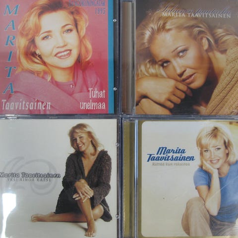 Myydään kotimaisten artistien cd-levyjä 5,00 euroa kappale. Kaikki cd:t kuunneltu ja todettu toimiviksi. Cd:ssä voi olla naarmuja & kansipapereissa jälkiä/omistuskirjoituksia, mutta cd-kotelot ovat ehjät. Postituskulut ostajalle ja noutokin sovittavissa.