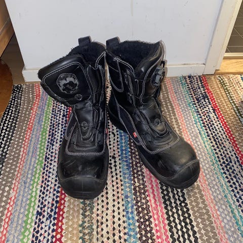 Sievi talvikengät, koko 45. Väriltään mustat yksityiskohdilla. Kengissä on nauhaton kiristysmekanismi (Boa-tyyppinen rulla), joka helpottaa pukemista ja riisumista. Päällinen on suunniteltu kylmiin olosuhteisiin ja varsi on nilkkaa tukeva. Pohjassa on karkea kuviointi, joka parantaa pitoa liukkaalla alustalla. Sisäpohjallinen on irrotettava, ja sen pituus on noin 30 mittanauhan mukaan. Sopivat talvikäyttöön työkengiksi.