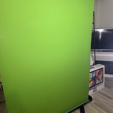 Elgato Green Screen -taustakangas, joka on suunniteltu striimaamiseen ja videokuvaukseen.