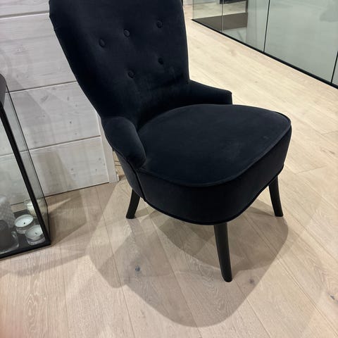 Myyn muuton alta ikean musta fröset nojatuoli.