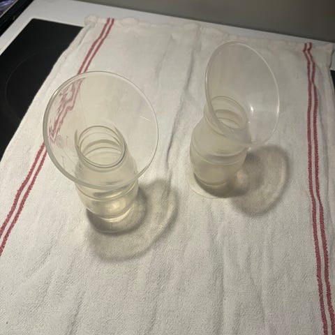 Pienentimet rintapumppuun. Kahta näistä kokeiltu ja todettu liian pieniksi. Koko siis 15mm. Pesty hakusteettomalla pesuaineella ja steriloitu. Kaksi täysin käyttämätöntä osaa.