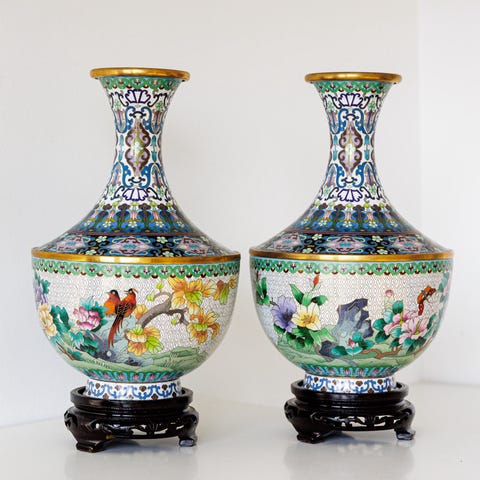 Myydään vintage kiinalainen cloisonné-maljakko.