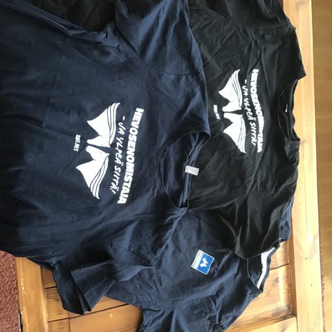 Heijastin liivit ja paidat, eri kokoja, osa käytetty ja osa uusia laput kiinni