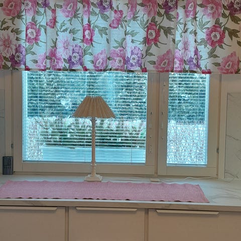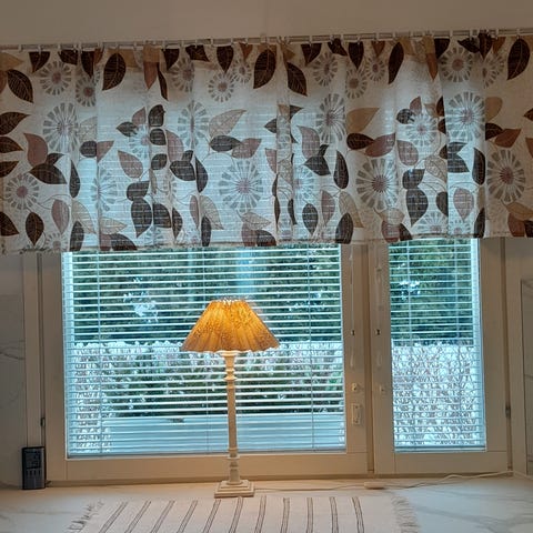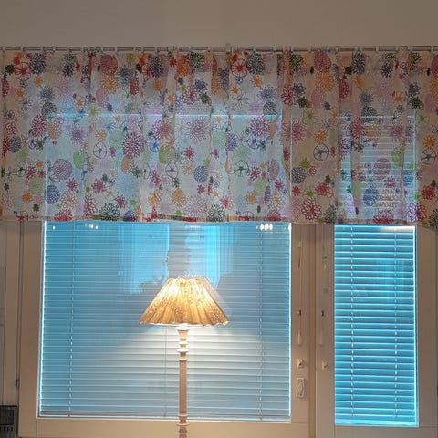 Ohuet keltaiset verhokapat rypytysnauhalla, 2 kpl. Vain nouto.