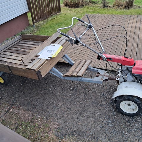 Myydään erittäin hyväkuntoinen havinainen peräkärry. Lavan mitat pit. 195 lev. 98. Erittäin tukeva rakenne, Seisonta jarru, ilmakumi pyörät, aukeavat laidat. Sopii puutarha traktorin tai Mönkijän perään sekä sarvi Traktorin perään.