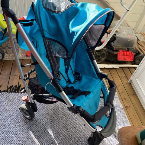 Pieneen tilaan menevät lasten matkarattaat (tai vaikka lemmikille). Säädettävä selkänoja ja kuomu, tavaratila, toimivat jarrut, ilmakumipyörät. Viisipistevyö rikki, mutta toimii näinkin, tai vyö vaihdettavissa vaikka rikkinäisestä rattaista. Saa myös ostettua varaosina. Näppärät kasata.