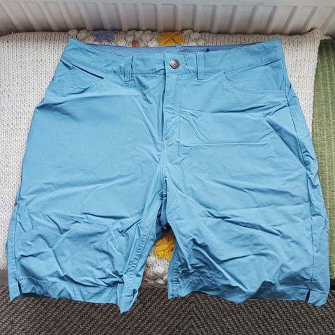 Patagonia naisten shortsit, koko 4 vastaa XS-S. Väri kirkas pinkki, vaaleanpunainen. Materiaali polyesteriä. Shortseissa on vyötäröllä kiristysnauha ja nappi- sekä vetoketjukiinnitys. Edessä ja takana useita taskuja, joista yksi takatasku vetoketjulla. Soveltuvat arki- ja ulkoilukäyttöön.