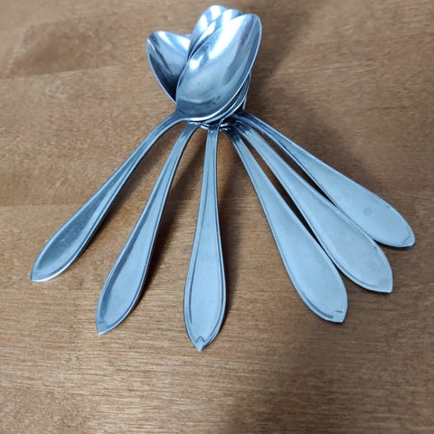 Hackman Sorsakoski ruokalusikat ruostumattomasta teräksestä, täysi tusina. Ovat kunnoltaan hyviä, kauniita, ajattomia. Hinta 3 euroa kappale. 36 euroa yhteensä.