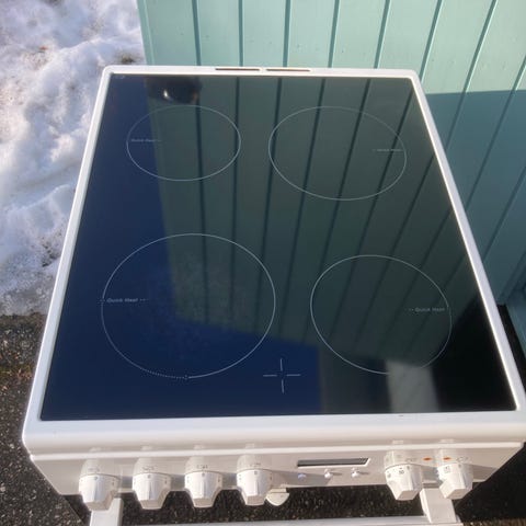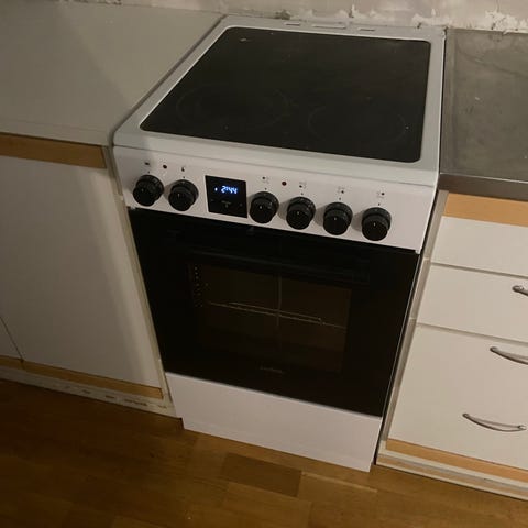 Kiertoilmauuni liesi keraamisella keittotasolla. Laitteessa on neljä keittoaluetta ja uunissa kiertoilmatoiminto. Etupaneelissa mekaaniset säätönupit uunin lämpötilalle, uunitoiminnoille ja keittoalueille. Uunissa useita ritilä- ja pelitasoja ruoanvalmistukseen. Soveltuu vapaasti seisovaksi liedeksi keittiöön, jossa on sähköliitäntä uunille ja keittotasolle.