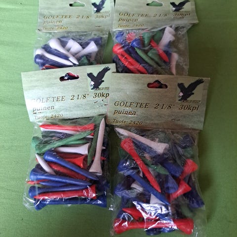 Tommy Armour Neon Greenskeeper Kit golfsetti. Pakkaus sisältää useita neonvärisiä muovisia merkkilätkiä griinille. Soveltuu golfpallon paikan merkitsemiseen griinillä kierroksilla.