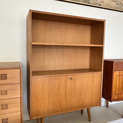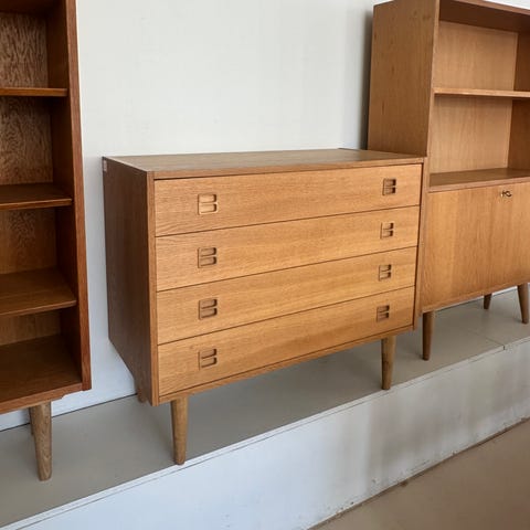 Rud Thygesenin suunnittelema tanskalainen vaaleatamminen kaappi 1960-70-luvulta.