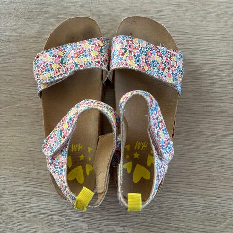 Hummel lasten sandaalit, koko 31 (mielestäni reilu mitoitus). Väri keltainen, unisex-malli. Sandaaleissa on tarrakiinnitys jalkapöydän ja nilkan kohdalla istuvuuden säätämiseksi, miellyttävää materiaalia. Pohjassa kuviointi, ei juurikaan kulumaa. Hyvä kunto, vähän likaa, en ole yrittänyt puhdistaa.