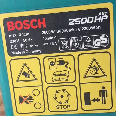 Stiga Bio Quiet oksasilppuri 2100W. Sähkökäyttöinen oksasilppuri, jossa on keltainen runko ja harmaa-mustat yksityiskohdat. Laite on varustettu pyörillä helpompaa siirtelyä varten. Soveltuu puutarhajätteen, kuten oksien ja risujen, silppuamiseen kompostointia tai hävittämistä varten. Käyttö- ja turvallisuustiedot löytyvät laitteen kyljessä olevasta tyyppikilvestä ja tarroista. Silppuria käytetty vain kolmena kesänä.