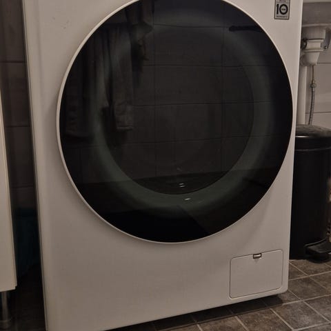 Pesukoneessa on ylhäältä avautuva luukku ja ohjauspaneeli, jossa on digitaalinen näyttö ja ohjelmavalitsin.