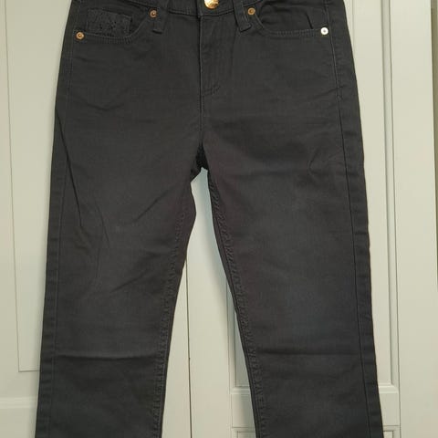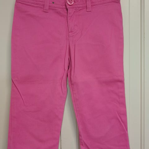 Edessä viistot taskut ja vyölenkit vyötäröllä. Takana napilliset taskut. Sopivat arkipukeutumiseen sekä tytöille että pojille.