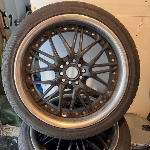 18 tuuman vanteet. ET 35, vanteiden leveys 8 tuumaa ja kantavuus 675 kg. Jotain kanttarijälkiä on, mutta ok yleisilme. Keskireikä 66,6 ja paikoillaan soviterenkaat 57,1 (vw / audi).