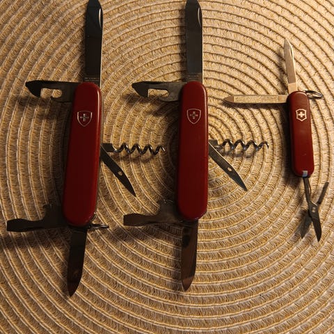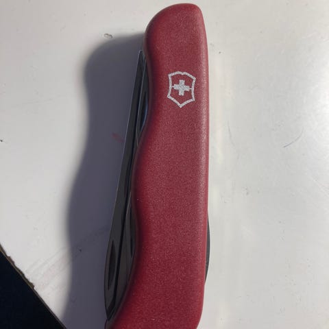 • Valmistettu Sveitsissä: terät korkealaatuista ruostumatonta terästä ja kahvalevyt kestävää, kuvioitua Alox-alumiinia.