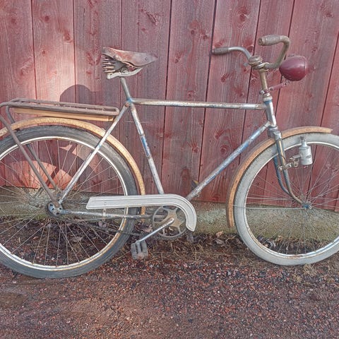 Pala turkulaista polkupyöräteollisuuden historiaa. Kaikki osat näyttää olevan alkuperäistä. Nahkasatula, renkaissa ilma pysyy. Ajokuntoinen. Nouto Pöytyän kirkonkylältä.