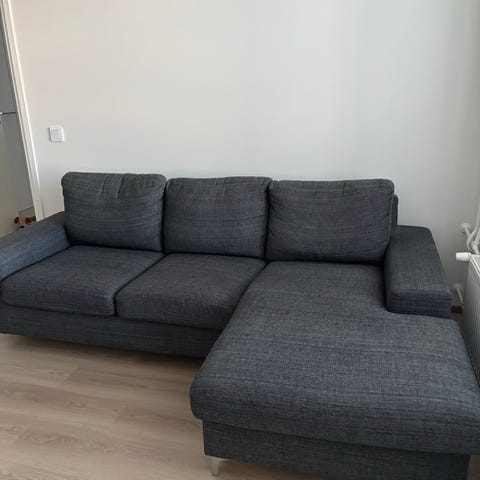 Kolmen istuttava sohva irrotettavalla lisäosalla