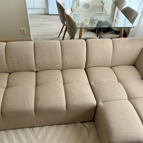 Divaanityynyssä muutama pieni väritahra, joka voi lähteä pesussa pois.