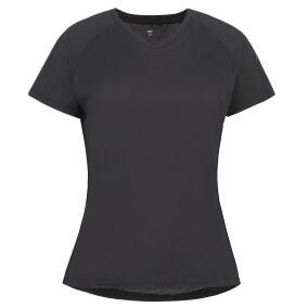 Naisten tekninen t-paita. Kangas haihduttaa kosteuden nopeasti, jolloin iho säilyy kuivana ja olo tuntuu miellyttävältä. Hieman väljempi D-mitoitus. Tuotteen stretch-materiaali joustaa neljään suuntaan antaen täydellisen vapauden liikkua. Ei ärsyttäviä sivusaumoja. Materiaali 100% polyesteri. Takapituus (koko 38): 64cm. Erikoismitoitus: Plus-mitoitus.