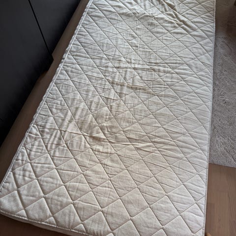 IKEA Sultan patja harmaalla päällisellä. Sopii sängyn tai patjan päälle lisäkerrokseksi mukavuuden parantamiseen ja pinnan suojaamiseen.