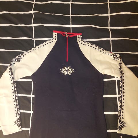 norjalainen neuletakki, tunnetun Dale of Norway -merkin valmistama. Dale of Norway neuleet tunnetaan perinteisistä pohjoismaisista kuvioistaan ja tinaisista hakaskiinnikkeistään