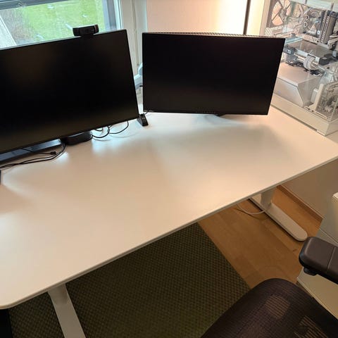 Linak työpöytä. Pöydässä on sähkökäyttöinen korkeudensäätö, jonka avulla työtason korkeutta voi säätää portaattomasti, maksimi korkeus on 128 cm. Suorakulmainen kansi, 140 cm * 80 cm ja harmaat metallijalat. Soveltuu työpisteeksi kotiin tai toimistoon istuma- ja seisomatyöhön. Kuvan hyväkuntoisen laatikoston saa kaupanpäälle, jos haluaa.