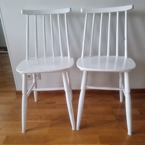 Myydään kaksi mustaa pinnatuolia, käytössä musta maali hieman kulunut. Muuten hyvät ja toimivat tuolit.