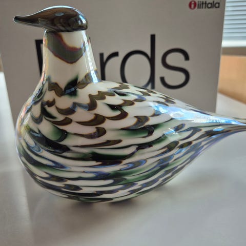 Oiva Toikan vuosilintu vuodelle 2001, kultakyyhky. Lintu on uudenveroisessa kunnossa, ei naarmuja tai osumia. Signeerattu "O.Toikka Nuutajärvi 2001". Linnun pituus on noin 21,5 cm ja sen korkeus on noin 13,5 cm. Nouto tai postitus.