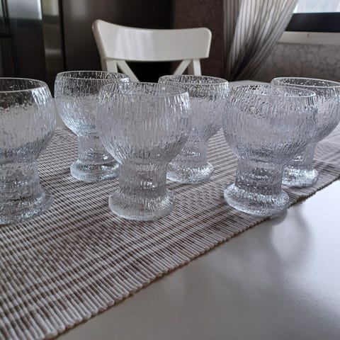 Iittala lasikulhot kirkasta lasia. Kulhoissa on kohokuvioitu, eläväpintainen lasi ja jalallinen muoto. Sopivat esimerkiksi jälkiruoille, pienille annoksille tai kattauksen lisäastioiksi. Myydään kuvissa näkyvänä settinä.