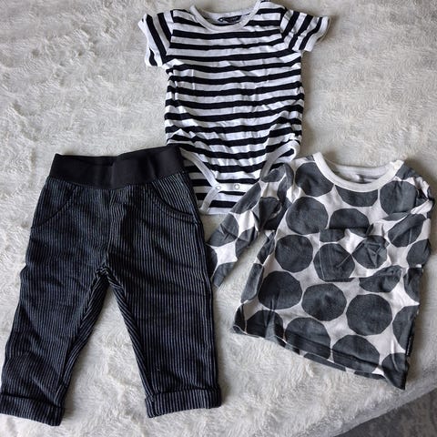 Myydään vauvojen vaatepaketti, pääosin kokoja 56–74. Mukana myös muutama 50- ja 80-senttinen vaate.