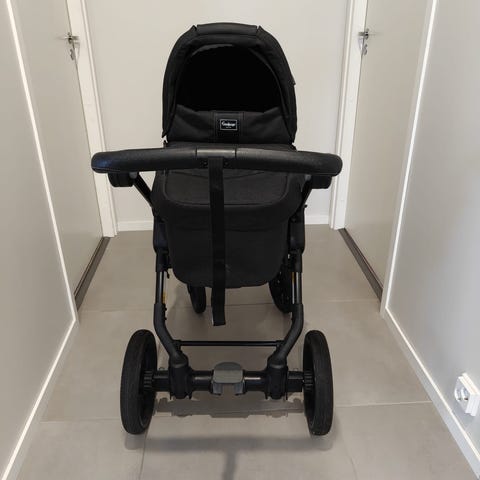 Vaunuissa on suuret ilmakumirenkaat ja säädettävä työntöaisa. Mukaan tulee myös toiset etupyörät, jotka ovat umpikumea. Kaikki renkaat ovat hyvässä kunnossa ja etupyörät saa tarvittaessa lukittua.