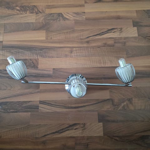 Valaisimia remontin tieltä pois. Loisteputkivalaisimia, spottivalo, pyöreitä kupuvalaisimia, keittiön työtasovalaisin pistorasialla ja toinen ilman pistorasiaa.