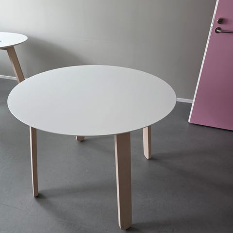 Pöydän keskellä oleva trumpettijalka jättää hyvin tilaa jaloille ja ruokapöydän tuolit on vaivaton sijoittaa vapaasti pöydän ympärille. Pöydän jalkaosa on pulverimaalattua metallia.