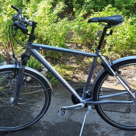 Nishiki Hybrid 401 -hybridipyörä miehelle on suunniteltu niin työmatkoille kuin kuntolenkeille. Sillä taittuu mukavasti matkat niin kaupungin vilskeessä kuin pyöräretket maaseudun rauhaisilla teillä. Hybrid 401:ssä on kevyt, kolmoisohennettu alumiinirunko ja tehokkaat hydrauliset levyjarrut. Voimansiirtona toimii Shimano Alivio, ja vaihteita pyörässä on 27. Ajomukavuutta lisäävät ergonomiset kädensijat, pistosuojatut renkaat, lokasuojat. Vähän käytetty pyörä, jota säilytetty varastossa. Erillinen lukko mikä näkyy satulan alapuolella on ehjä, mutta avain kadonnut. Saa mukaan tai leikkaan sen irti