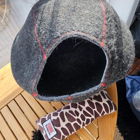 Hyväkuntoinen huopapesä kissalle. Vetoketjulla alaosa ja yläpuoli kiinnitys.